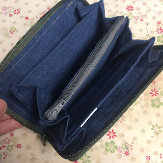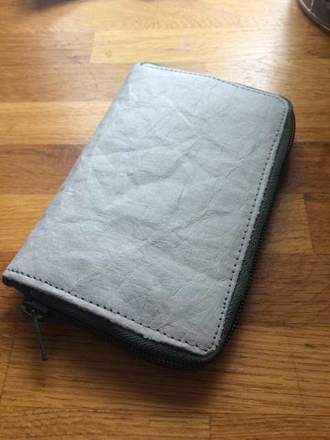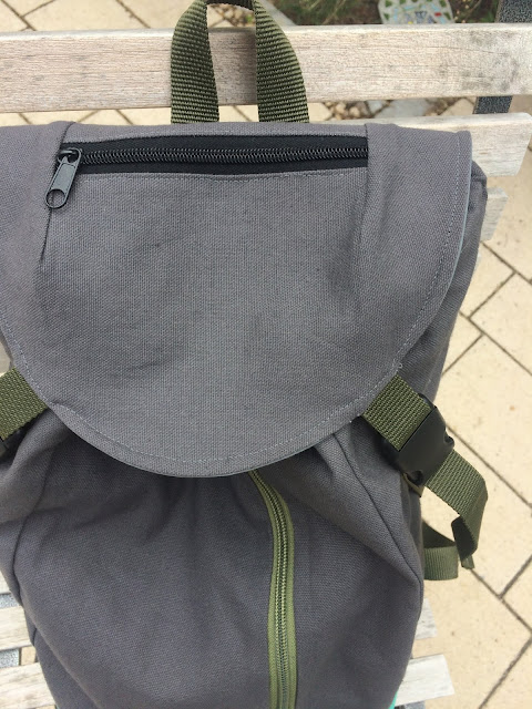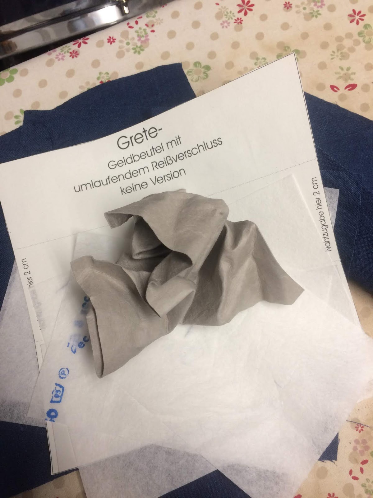 Zum neuen Rucksack sollte es auch einen neuen Geldbeutel geben. Den habe aber ich genäht, eine kleine Machwerk "Grete", aussen aus grauem Snappap. Ich hatte noch nie mit Snappap gearbeitet und bin sehr gespannt, wie gut es hält. Nähen lässt es sich toll, Wenden war eher so mittel...