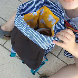Meine Söhne haben schon seit zwei Wochen Ferien und da wir leider nicht richtig wegfahren können (siehe letzter Post) hatte ich überlegt, als Abwechslung zu Schwimmbad- und Ikeabesuchen ein bisschen kreative Beschäftigung anzubieten. Nicht ganz einfach bei fast pubertierenden Jungs, aber der mittlere, fast 11 Jahre alt, hat schon öfter kleine Sachen an der Nähmaschine genäht und war von der Idee ganz angetan. Ein Rucksack sollte es sein! Eine tolle Idee, zumal er morgen mit Oma und Opa an die Ostsee verreist, da ist ein bisschen neues Handgepäck doch immer ganz schick.